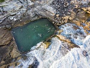 Waves sweep in to refresh the pool Mahon Ocean Pool, Maroubra, NSW, Australia